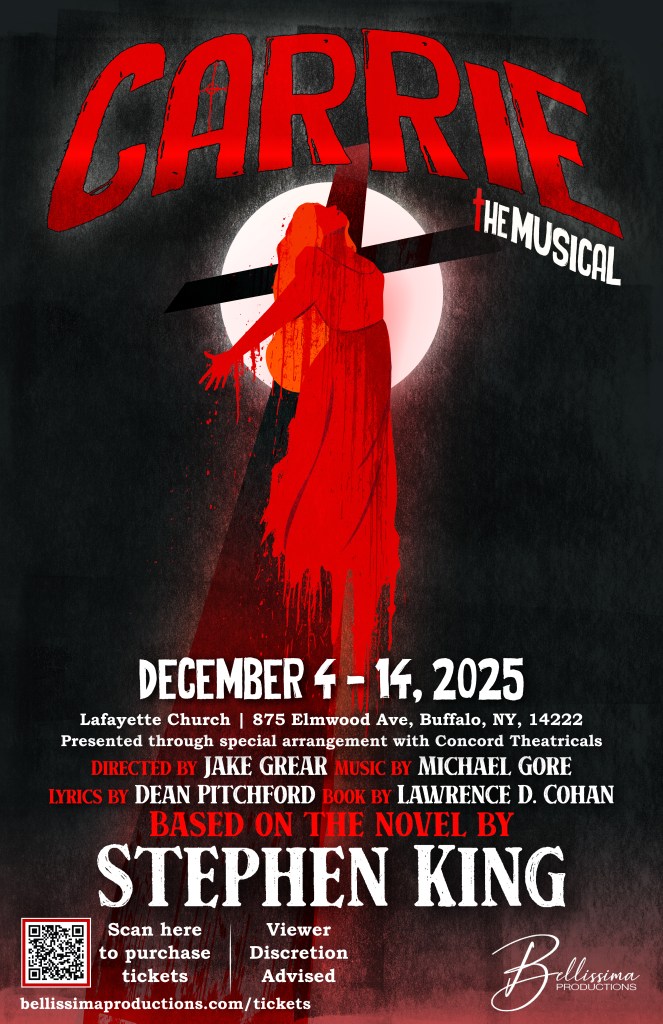 Join us for the second show of our 2025/2026 season opening December 14! Carrie: The Musical is Bellissima Productions’ second show of the 2025/2026 season. Presented through special collaboration with Concord Theatricals and based on the novel by Stephen King, Carrie will be a night to remember for all!